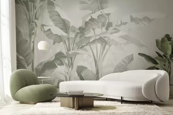 Valokuvatapetti Trooppiset banaaninlehdet pehmeissä vihreissä sävyissä Nr w09311v1