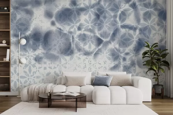 Valokuvatapetti Abstrakti kuvioitu taidetta sininen kukka tulostaa, haalistunut ja hämärtynyt vaikutus, luo pehmeän ja unenomainen tunnelma Nr w09322