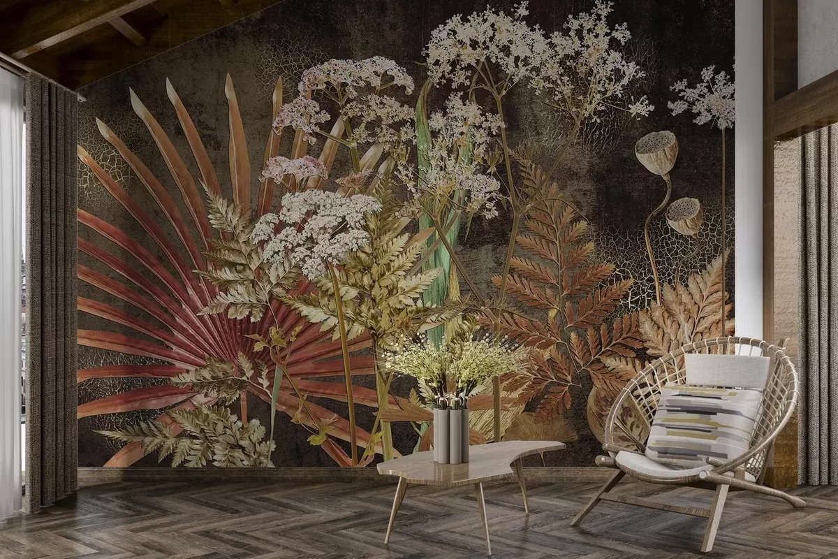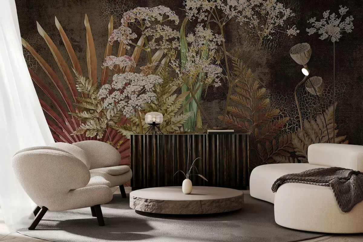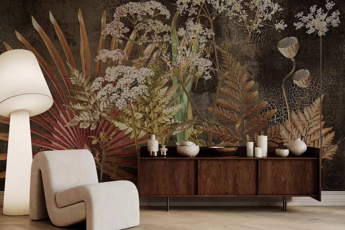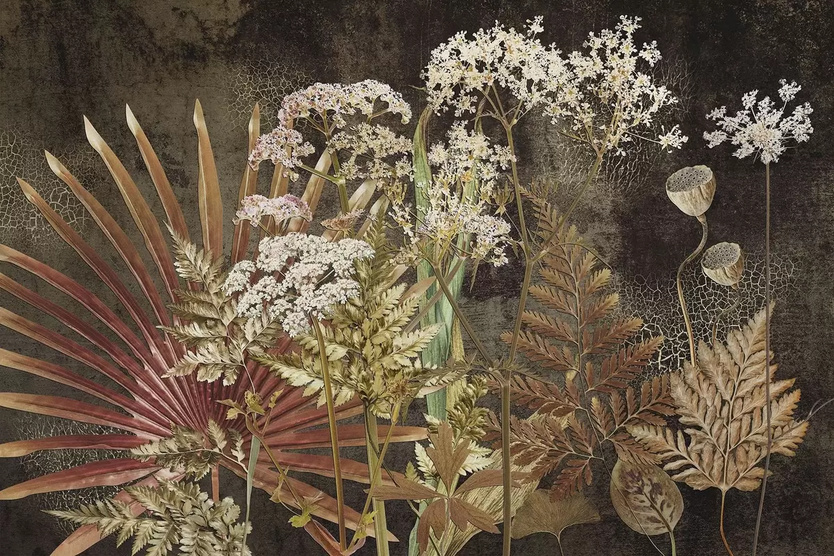 Valokuvatapetti Herbarium tummalla taustalla Nr w09323