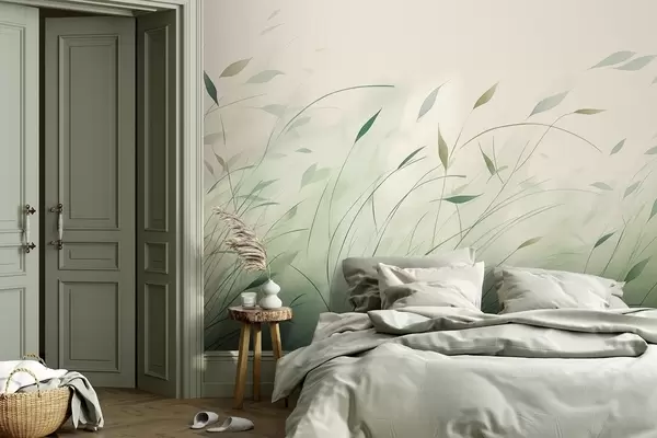 Valokuvatapetti Tuulessa heiluttava vihreä ruoho vesiväri-tyylillä Nr w09331