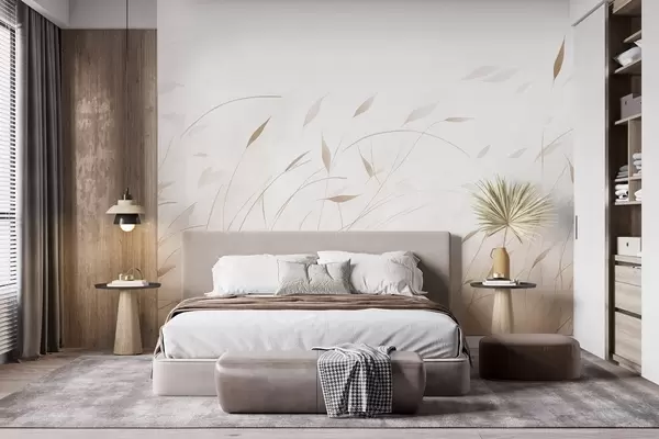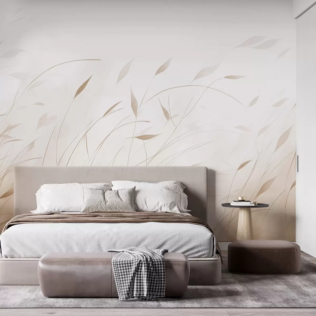 Valokuvatapetti Tuulessa heiluttava ruoho vesiväri-tyylillä beige sävyissä Nr w09331v1