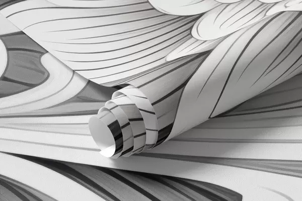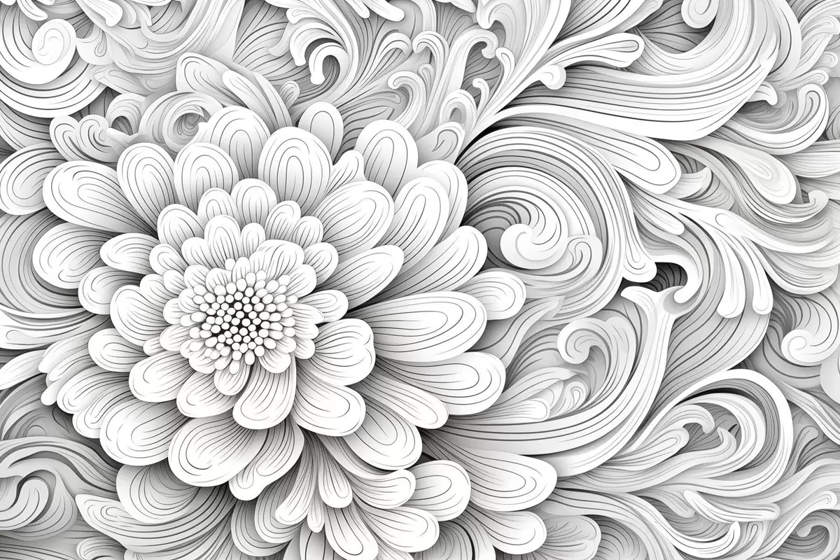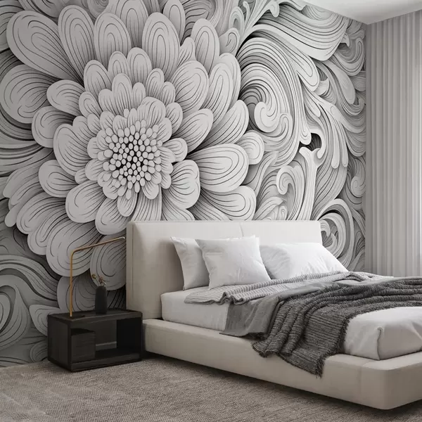 Valokuvatapetti Koristeellinen mustavalkoinen kuvio kukan ja pyörteiden muodossa Nr w09355
