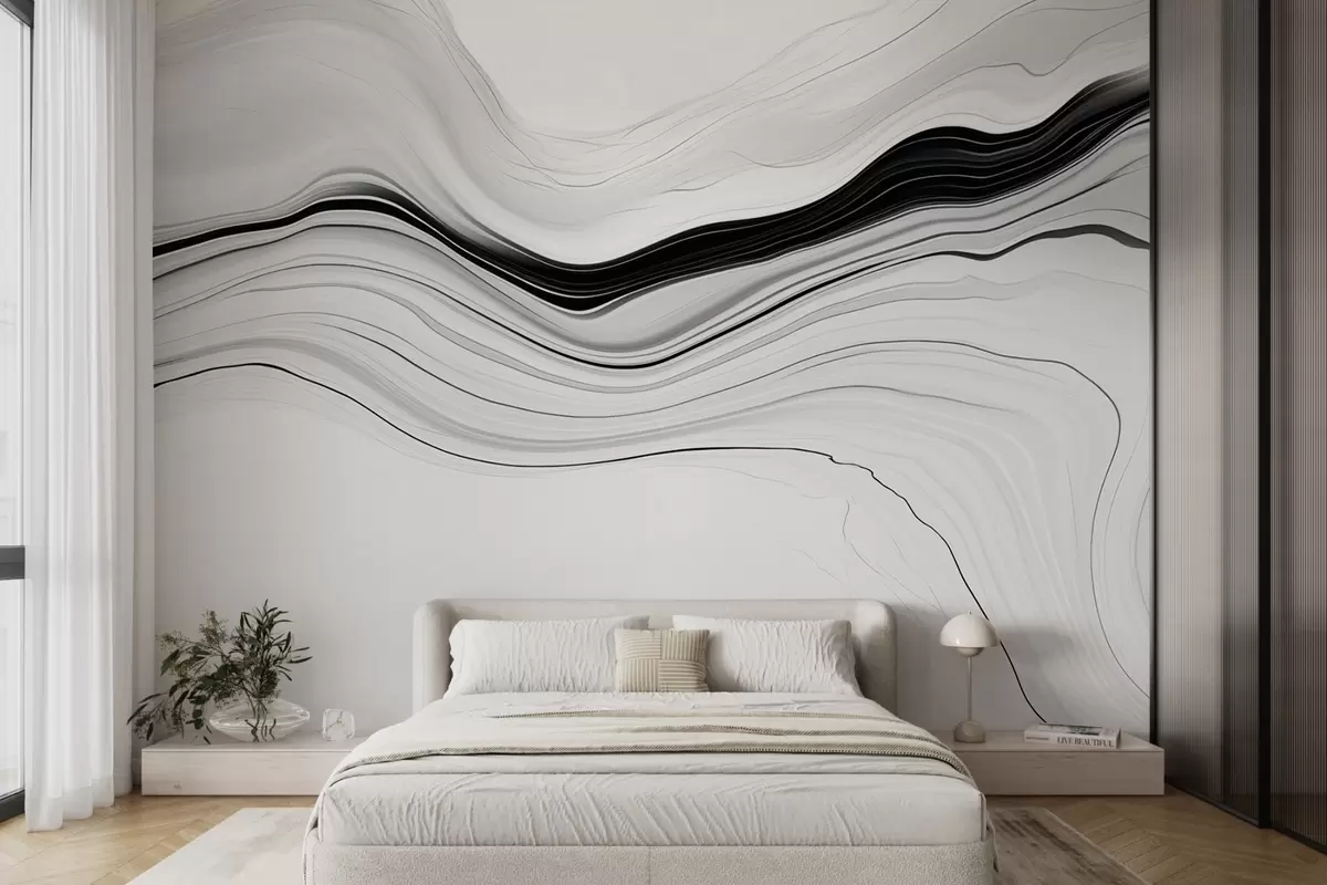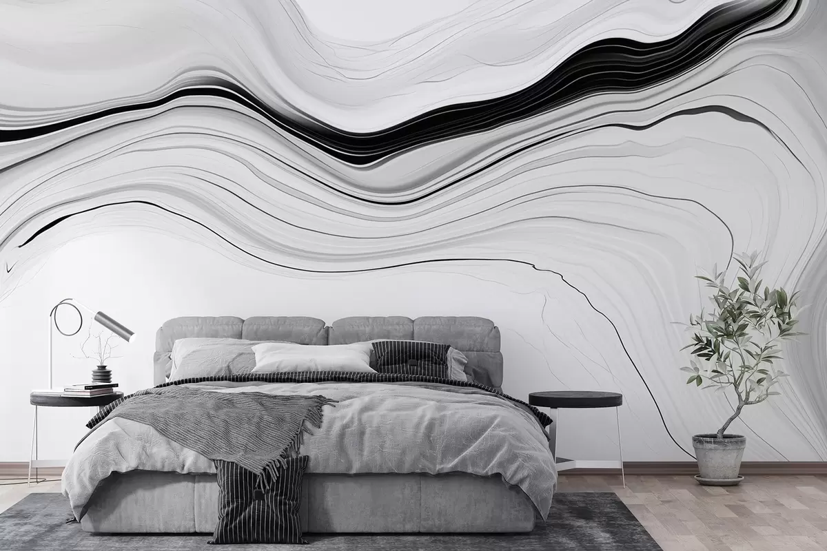 Valokuvatapetti Mustavalkoinen kuvio, jossa on marmorikerrosten vaikutus Nr w09358