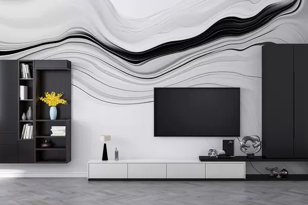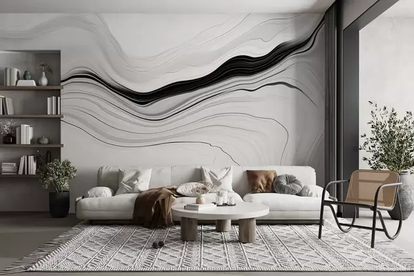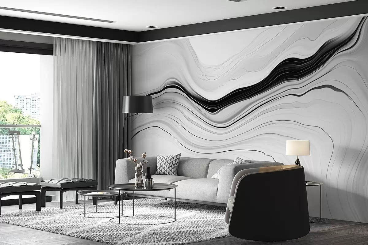 Valokuvatapetti Mustavalkoinen kuvio, jossa on marmorikerrosten vaikutus Nr w09358