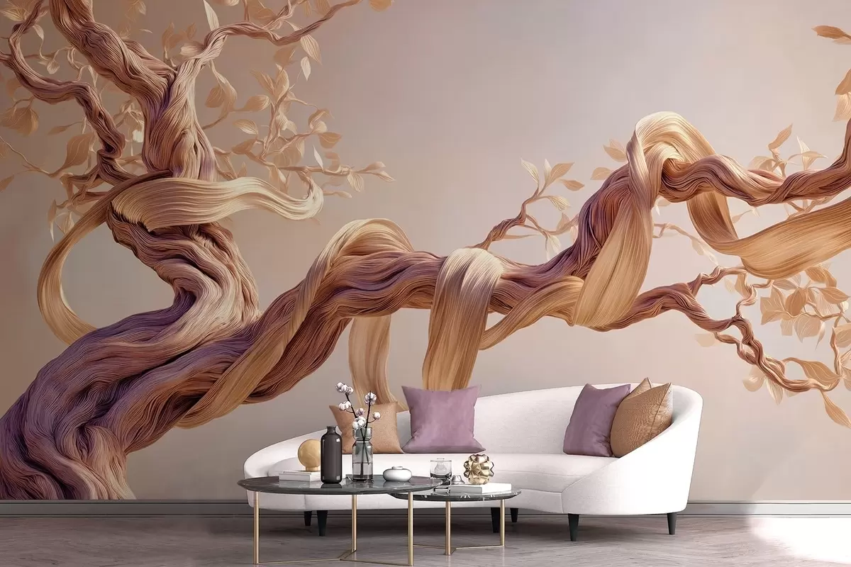 Valokuvatapetti Kierretty puunrunko koristeellisilla lehdillä Nr w09360