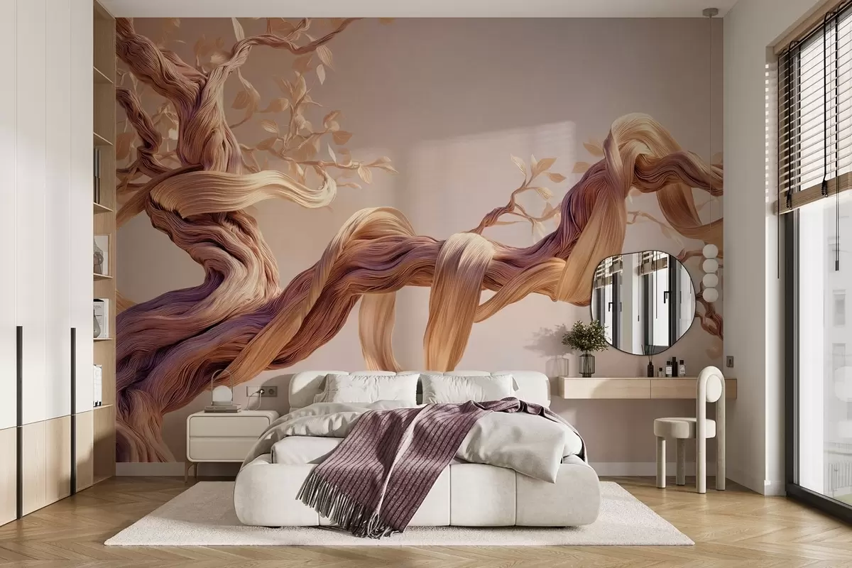 Valokuvatapetti Kierretty puunrunko koristeellisilla lehdillä Nr w09360