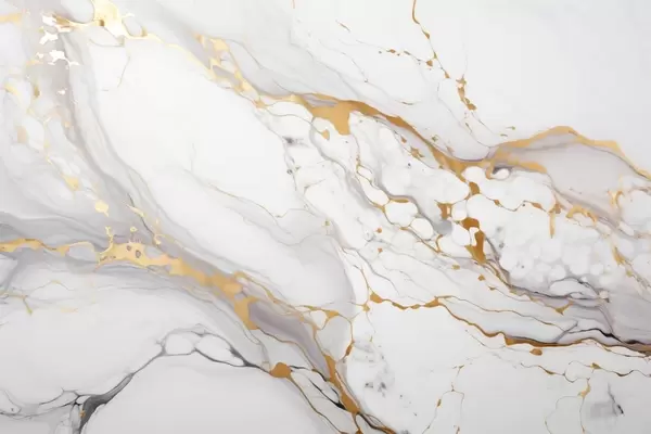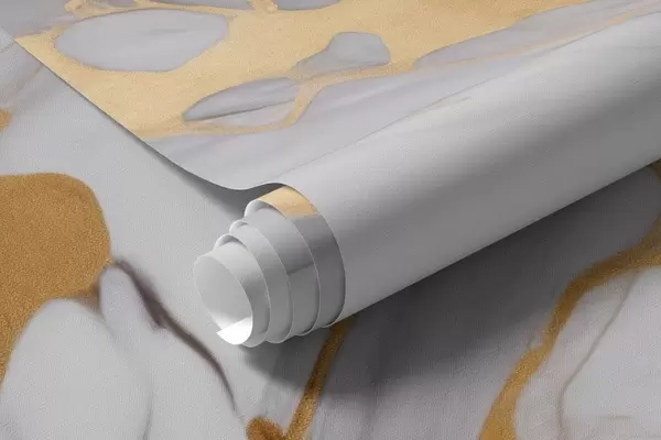 Valokuvatapetti Jäljitelmä marmoritekstiilistä, jossa on pehmeän harmaita siirtymiä ja keltaisia aksentteja Nr w09362