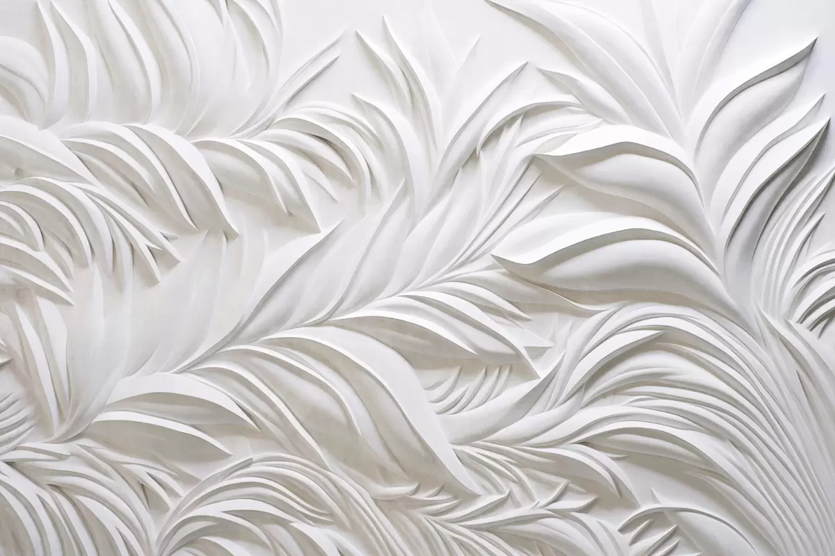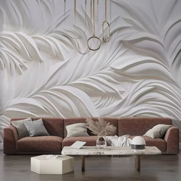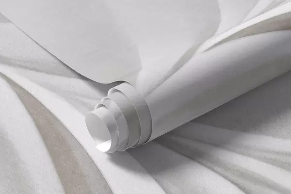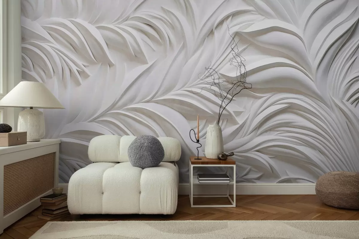 Valokuvatapetti Abstraktit kuvioidut valkoiset lehdet ja kukkaelementit, minimalistinen estetiikka Nr w09378