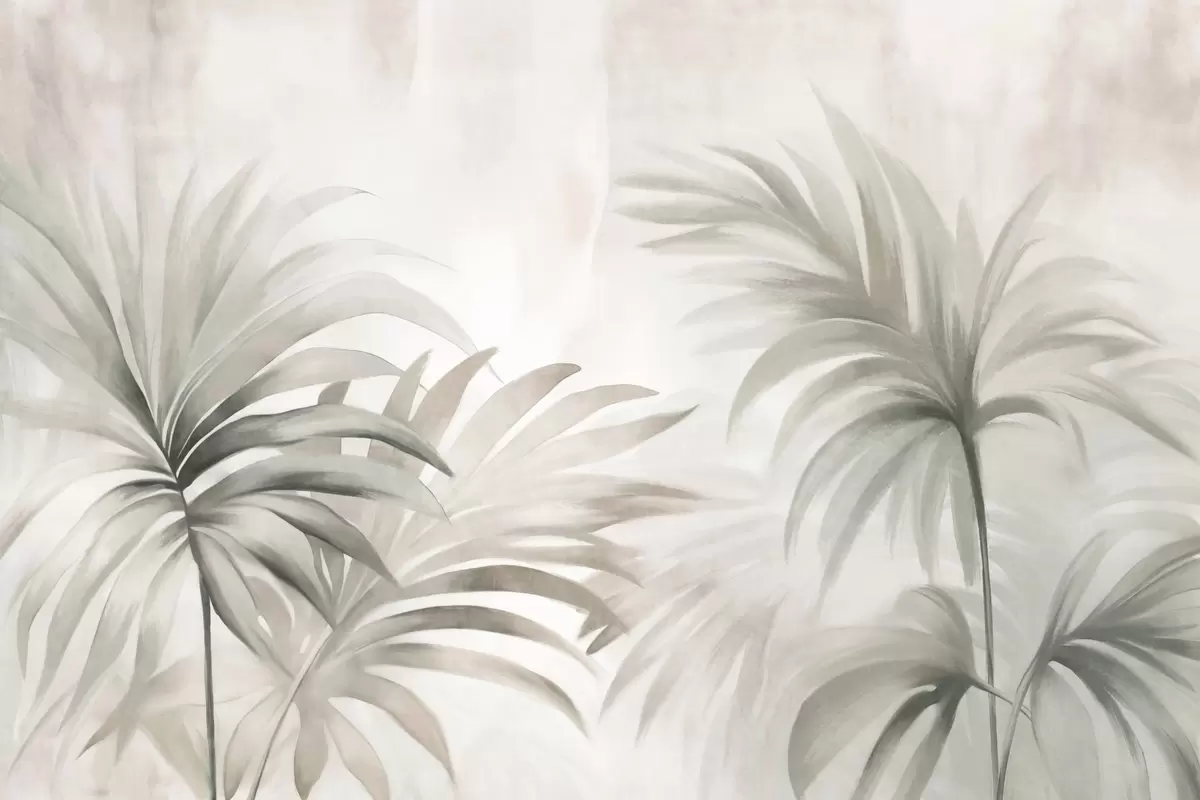 Valokuvatapetti Palmun kuvioitu lehdet neutraaleja värejä, beige abstrakti tausta, pehmeä siveltimenvedot, trooppinen kuvioitu lehtien Nr w09380