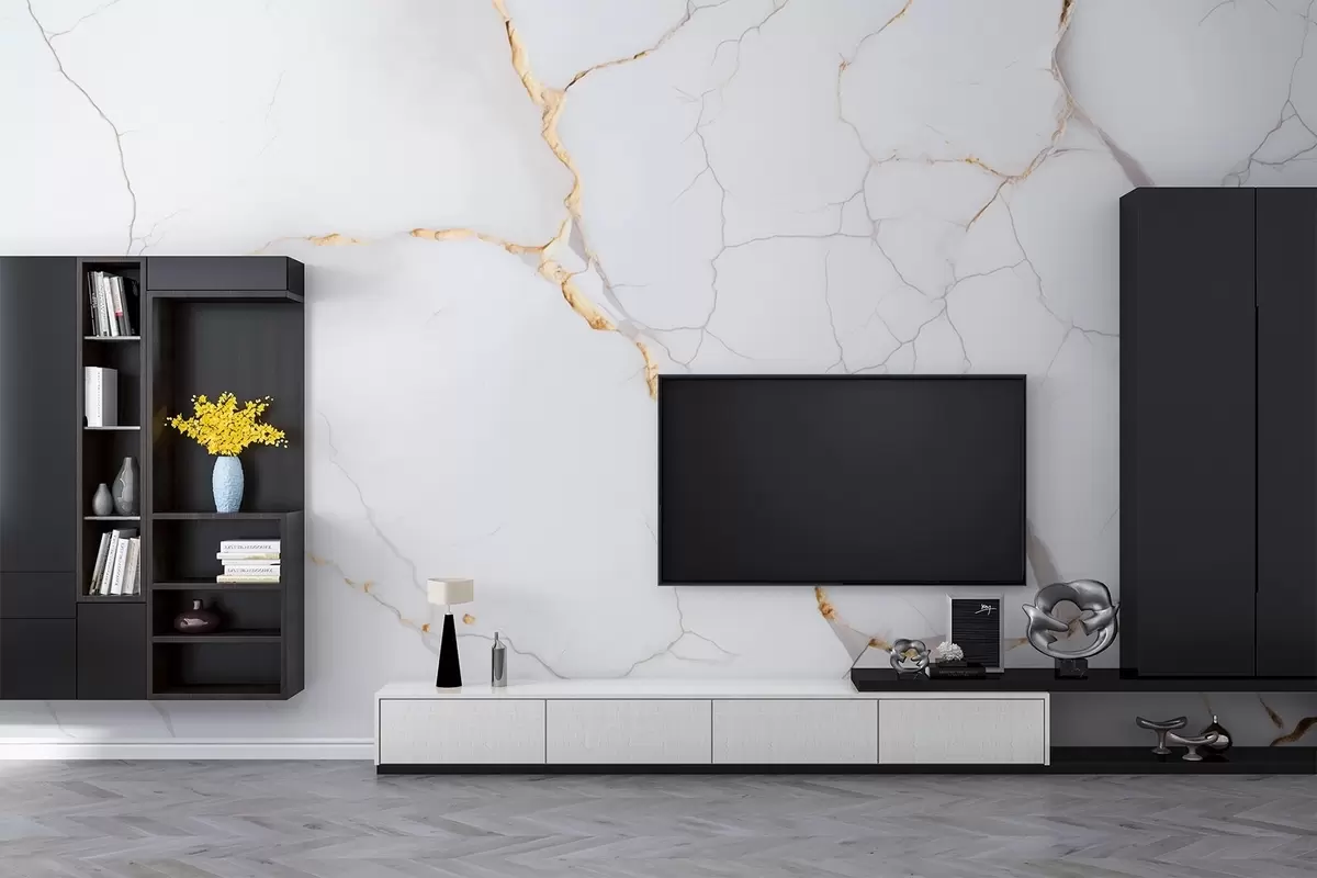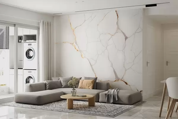 Valokuvatapetti Marmorin jäljitelmä, jossa on hienoja halkeamia ja keltaisia suonia Nr w09390