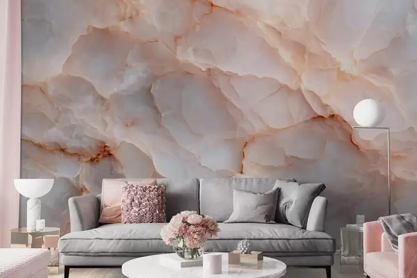 Valokuvatapetti Ylellinen marmorijäljitelmä beige-harmaissa sävyissä, hohtava vaikutus Nr w09412