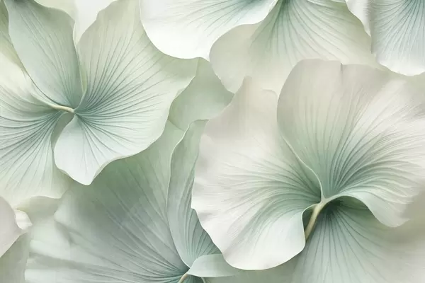 Valokuvatapetti Valkoiset ja beige ginkgo-lehdet, pehmeä  tekstuuri, abstrakti kukkatausta, minimalistinen moderni tyyli w09421v1