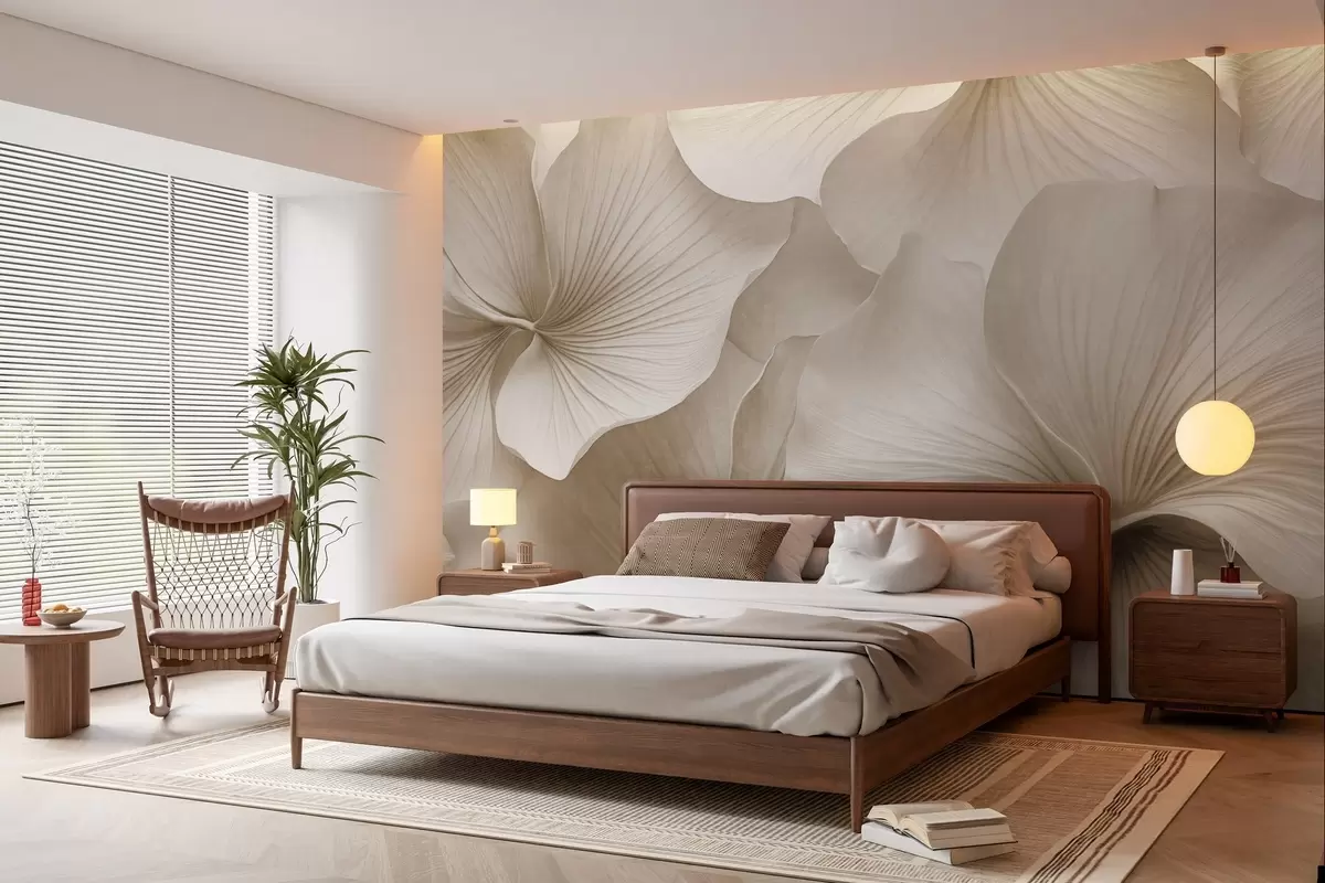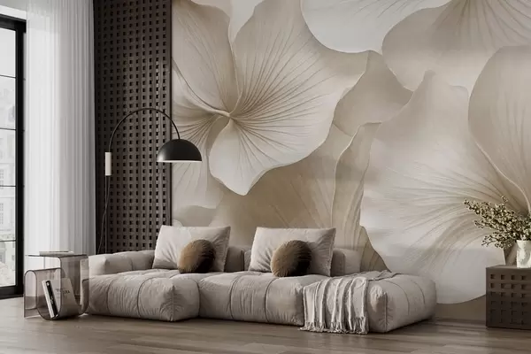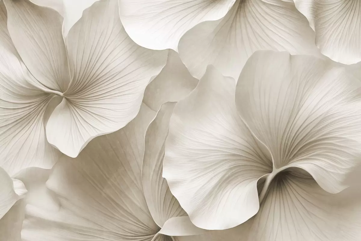 Valokuvatapetti Valkoiset ja beige ginkgo-lehdet, pehmeä tekstuuri, abstrakti kukkatausta, minimalistinen moderni tyyli Nr w09421v1