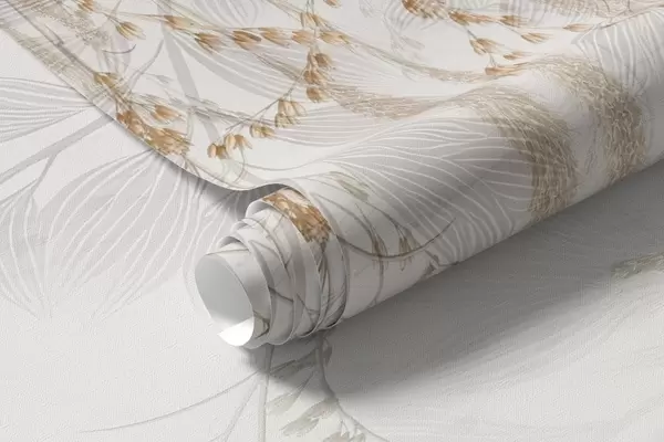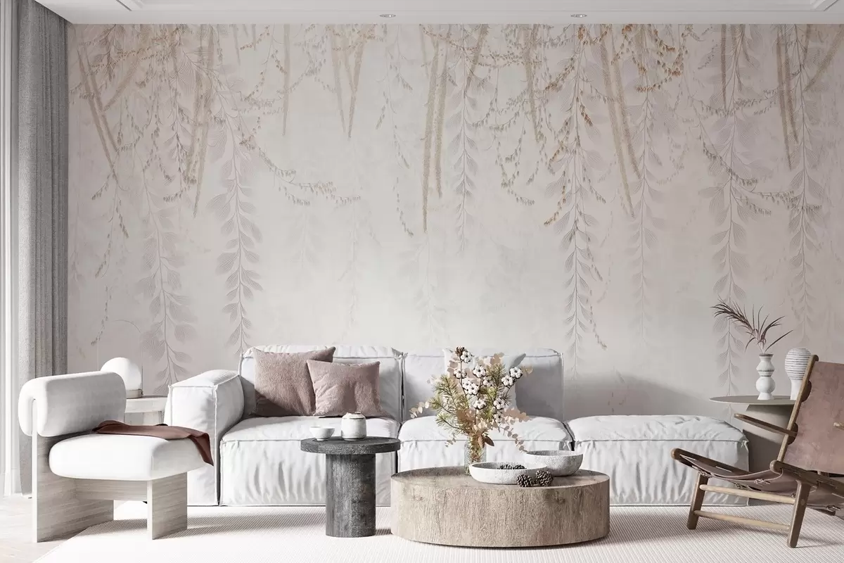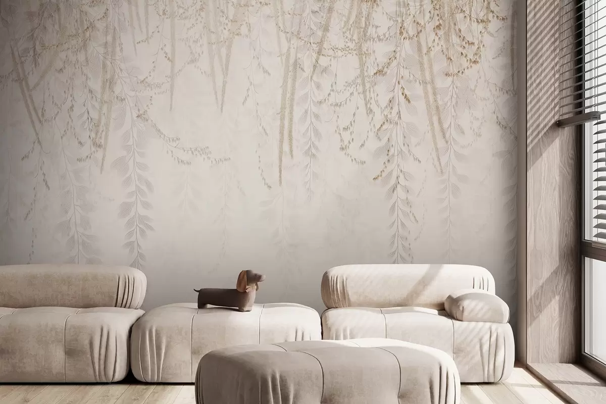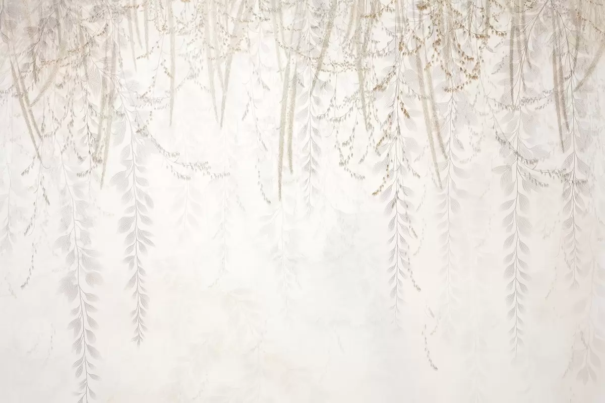 Valokuvatapetti Vaaleat riippuvat lehdet ja oksat beige-sävyissä Nr w09433