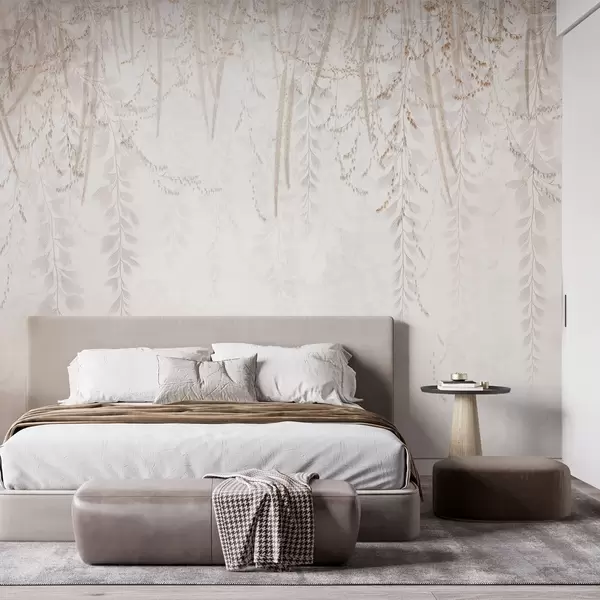 Valokuvatapetti Vaaleat riippuvat lehdet ja oksat beige-sävyissä Nr w09433