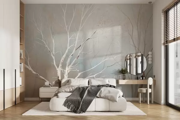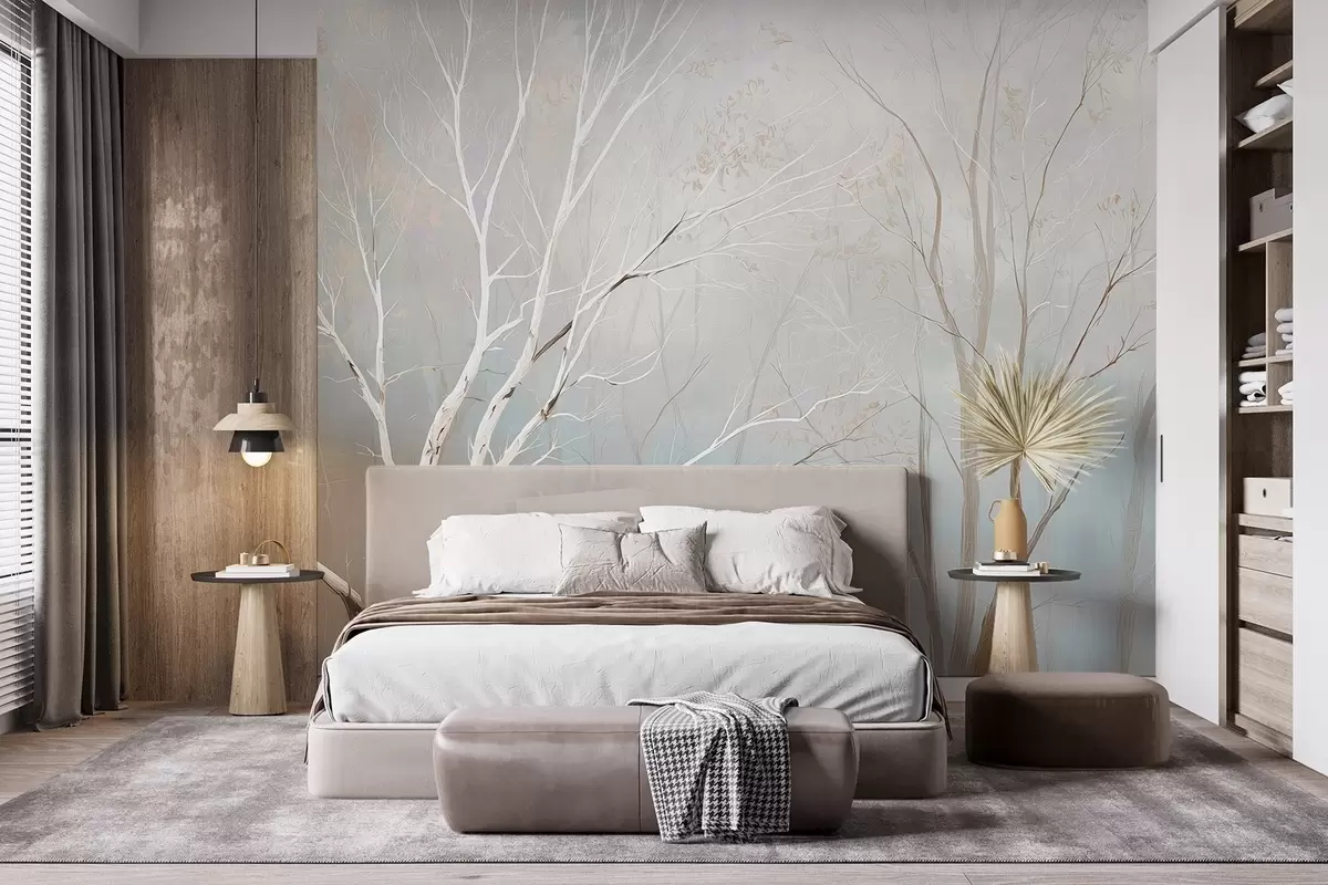 Valokuvatapetti Vaaleat oksat aamukosteudessa pastellisävyissä Nr w09447