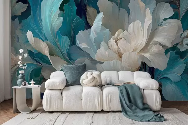 Valokuvatapetti Hienostunut, tilava pioni viileässä värimaailmassa Nr w09456