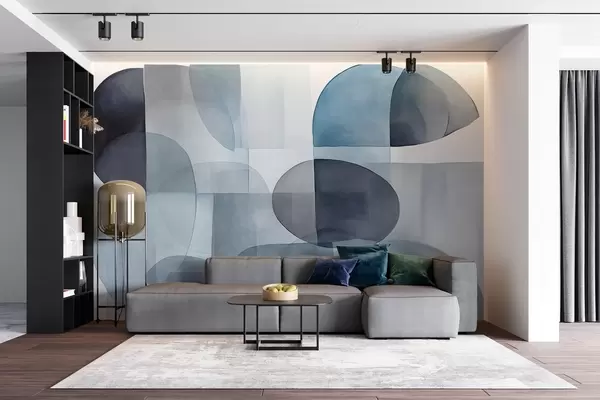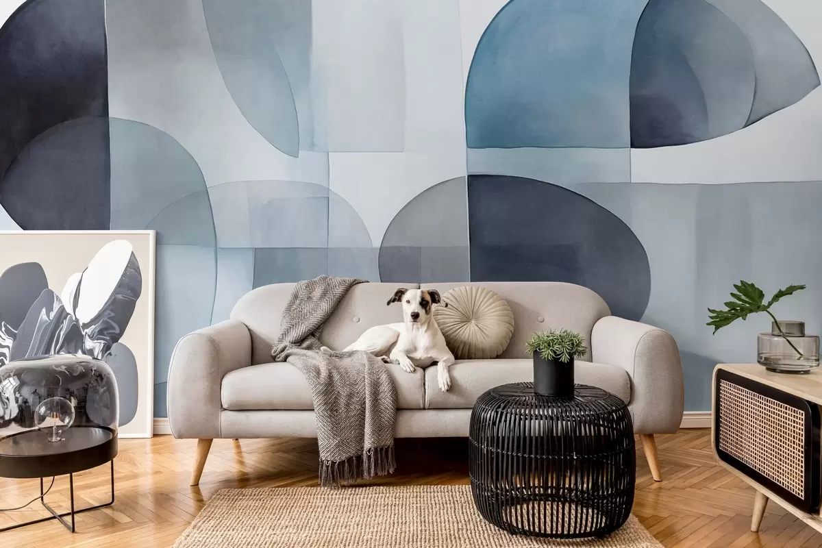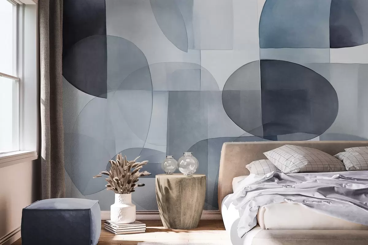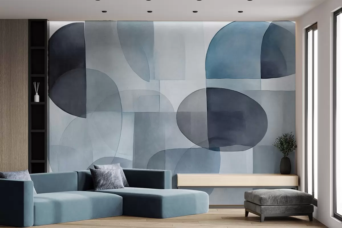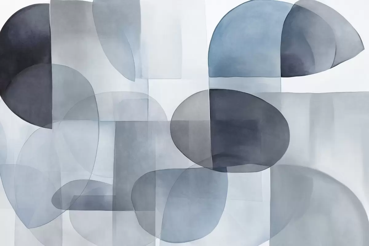 Valokuvatapetti Abstraktit teksturoidut muodot harmaan ja sinisen sävyissä, hillityt sävyt, minimalistinen sommitelma, neutraali tausta Nr w09467v1