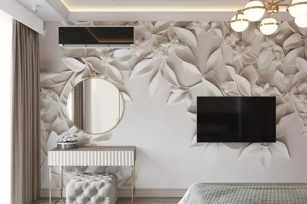 Valokuvatapetti Valkoiset teksturoidut kukat ja lehdet, kukka-asetelma, tyylikäs muotoilu, minimalistinen tyyli, koristeellinen taide Nr w09479