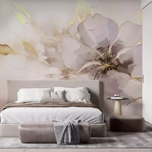 Valokuvatapetti Sininen kukka keltaisilla korostuksilla abstraktissa siveltimenvetotyylissä Nr w09505