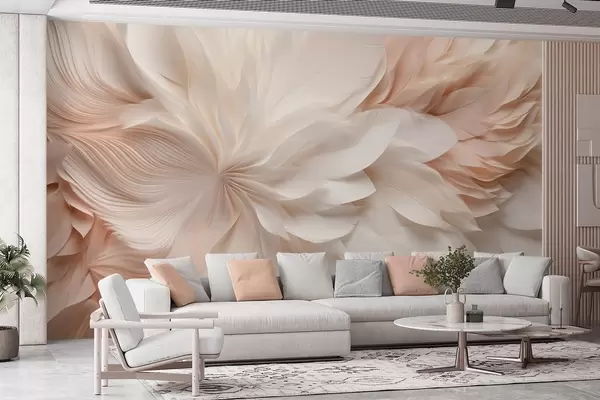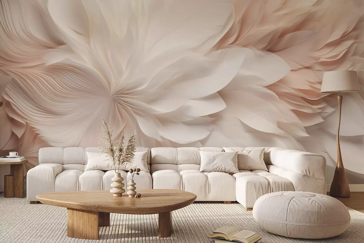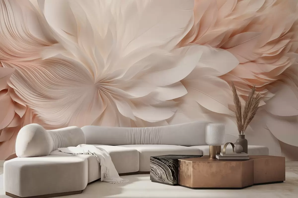 Valokuvatapetti Hienostuneet abstraktit höyhenet liikkeessä beige- ja kermanvärisissä sävyissä Nr w09509