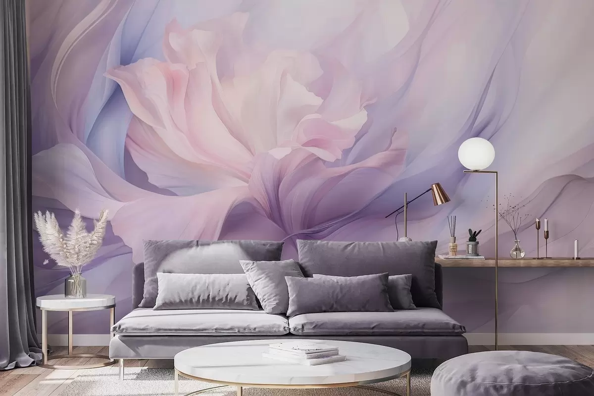 Valokuvatapetti Hellävarainen terälehtien sumu: ilmava kukka pastellilila sumussa Nr w09517