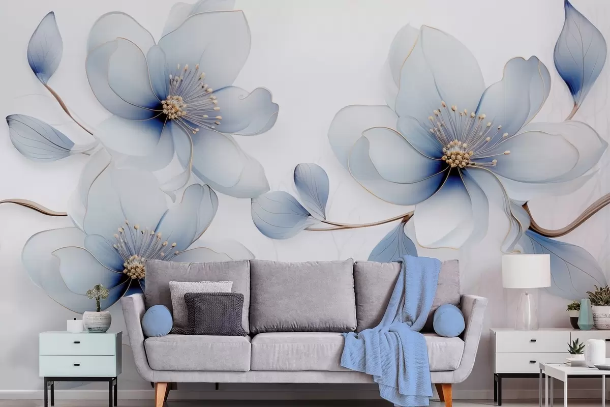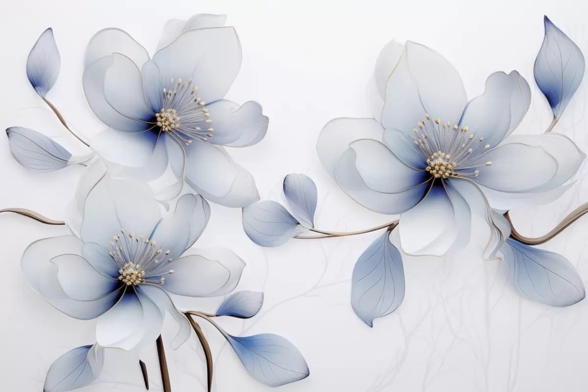 Valokuvatapetti Elegantti magnolian kukkakimppu sinisen sävyissä Nr w09520
