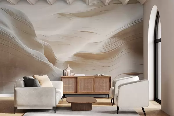 Valokuvatapetti Hiekkakivikanjonin teksturoidut seinät, joissa on pehmeät, virtaavat kaaret ja tekstuurit, luonnonkauneus, minimalismi Nr w09533