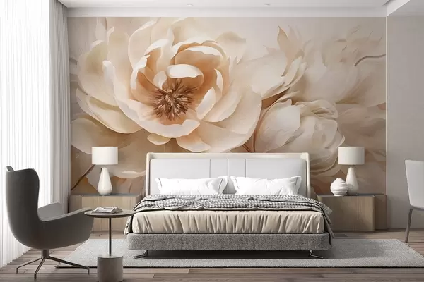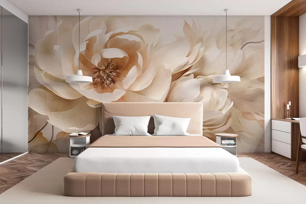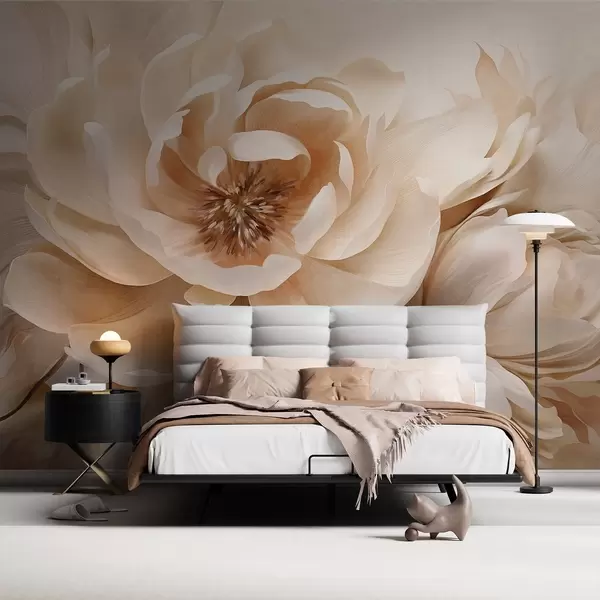 Valokuvatapetti Kermainen tekstuuri, ruskeat keskiosat ja lehdet, hämärtynyt vaalea abstrakti tausta Nr w09554