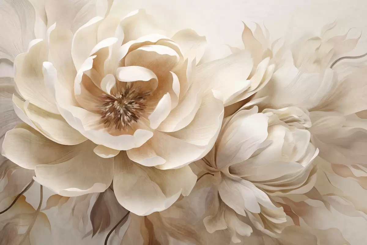 Valokuvatapetti Kermainen tekstuuri, ruskeat keskiosat ja lehdet, hämärtynyt vaalea abstrakti tausta Nr w09554