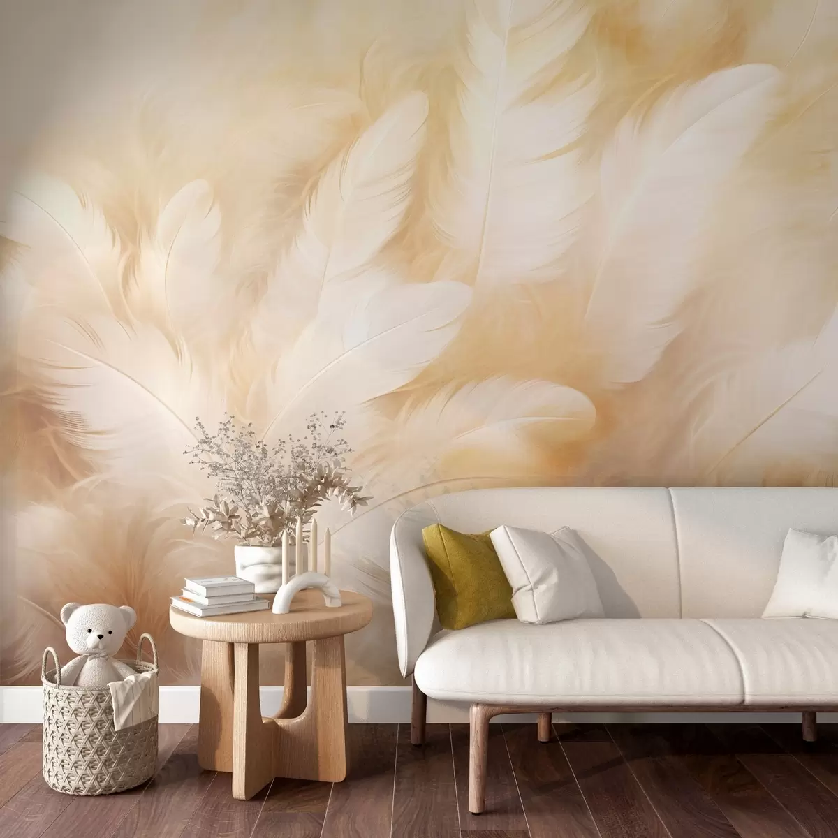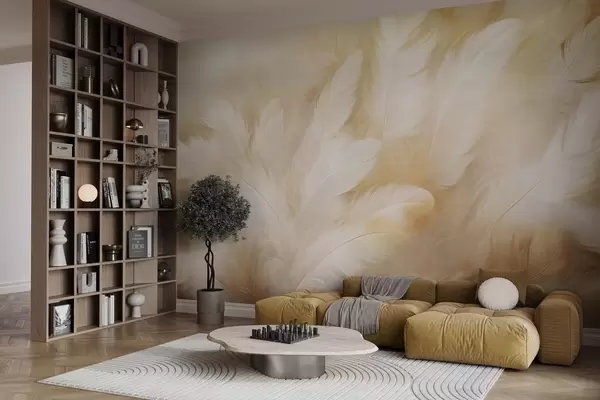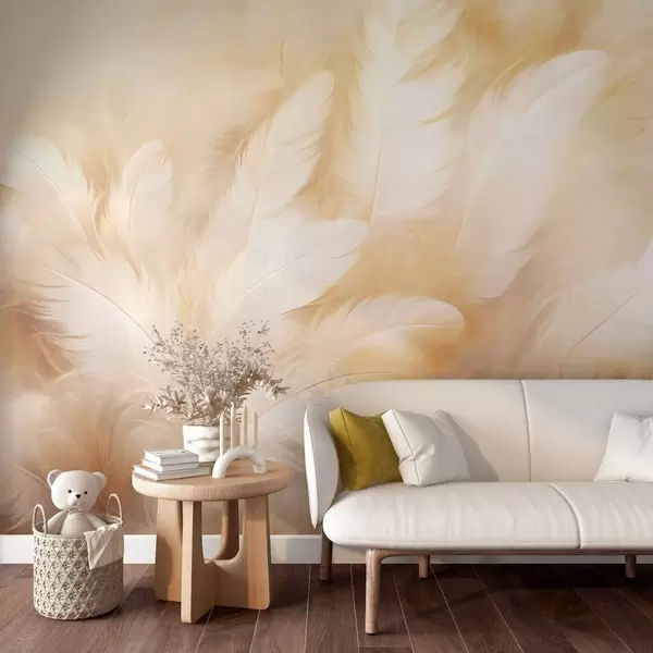 Valokuvatapetti Valkoiset ja keltaiset höyhenet, pehmeä tekstuuri Nr w09606