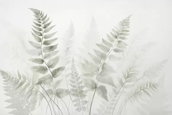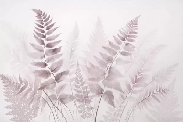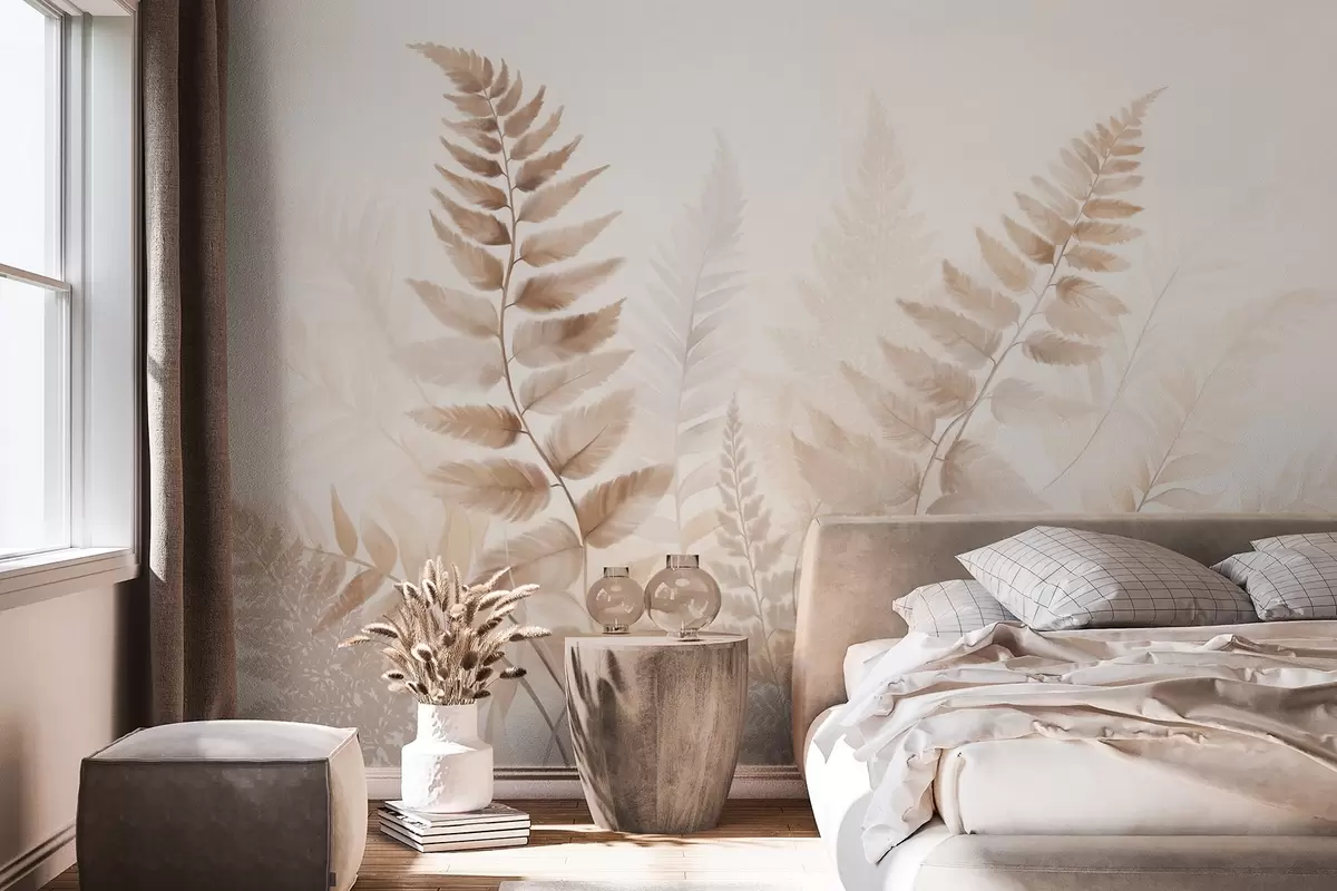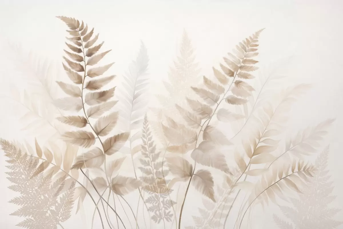 Valokuvatapetti Teksturoidut kuivatut saniaislehtien eri ruskean sävyt, pehmeä, vaalea tausta vesiväri-tyylillä Nr w09615