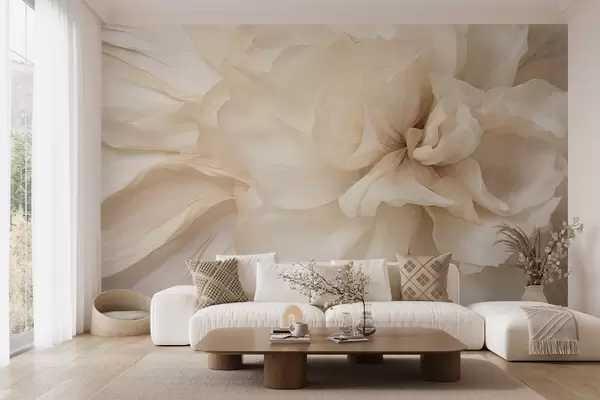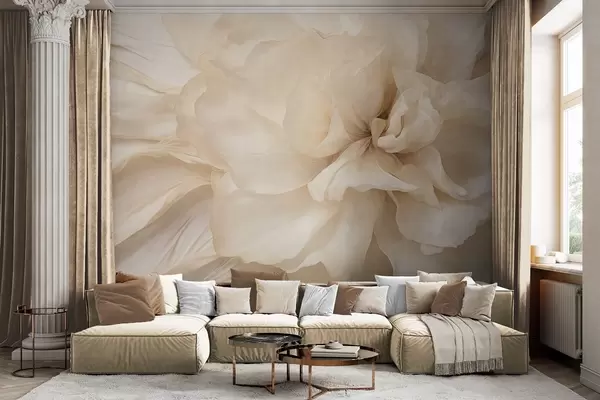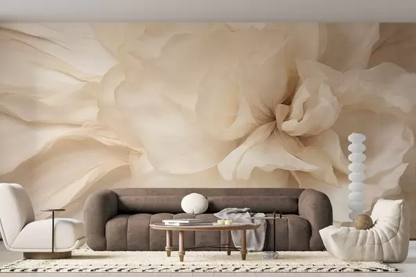 Valokuvatapetti Teksturoitu, herkkä, vaalea kukka, jossa on läpikuultavat terälehdet ja pehmeä abstrakti tausta Nr w09632