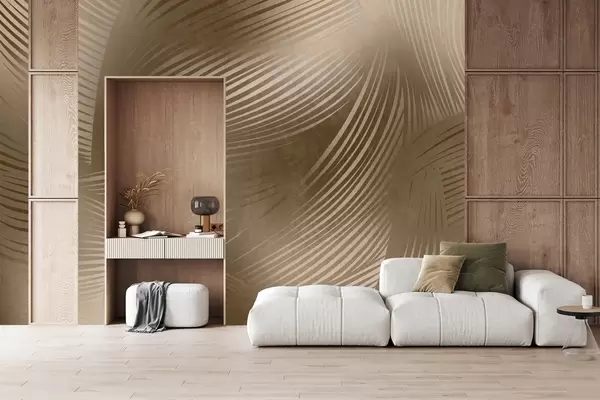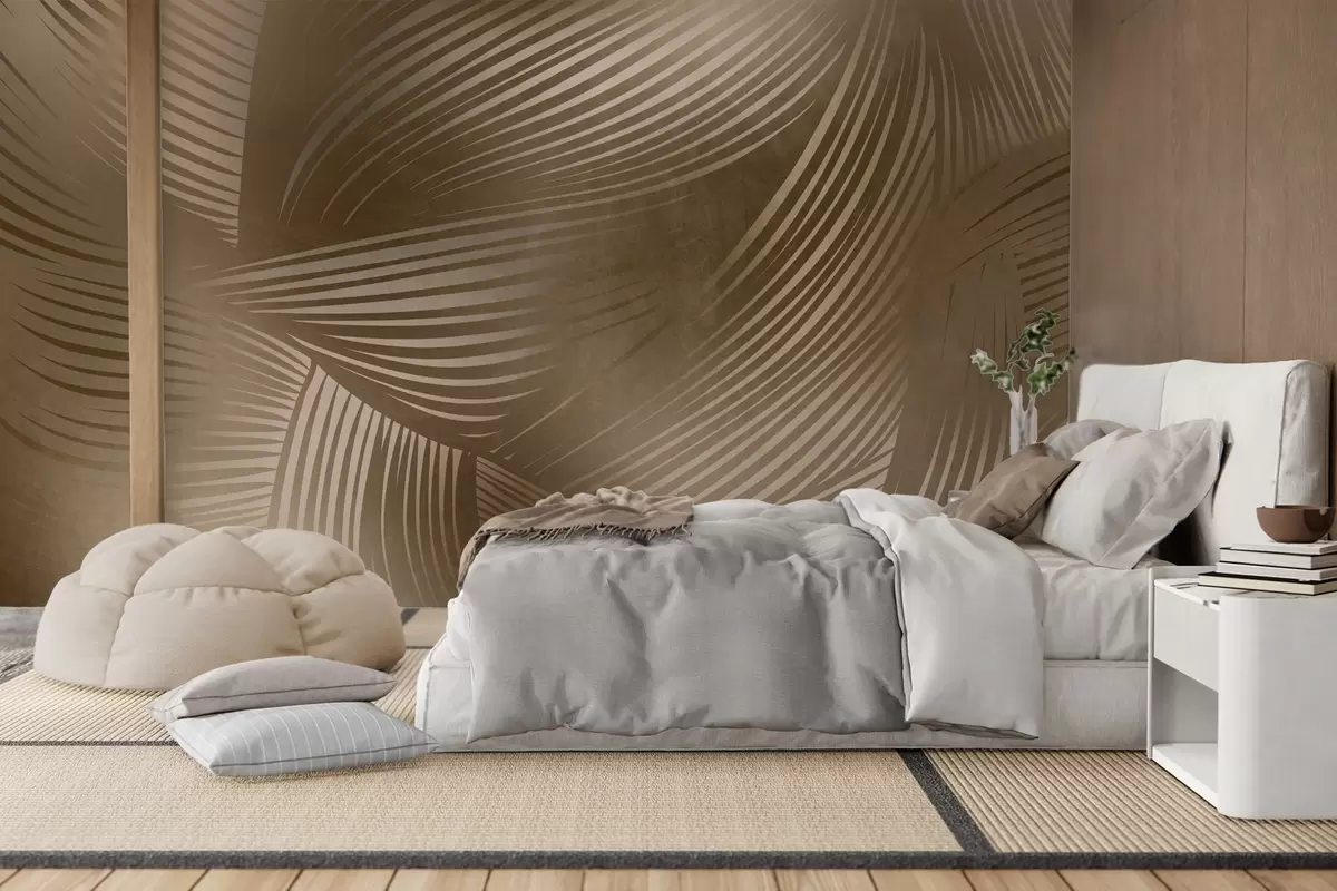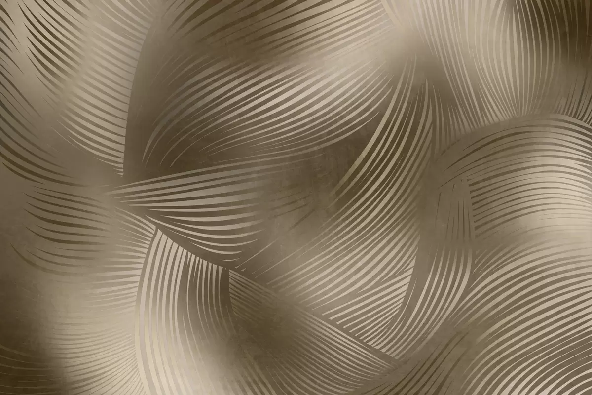 Valokuvatapetti Abstrakti painatus virtaavista, kaarevista viivoista tummanruskeissa sävyissä, jotka luovat teksturoidun, modernin taideteoksen. Nr w09646
