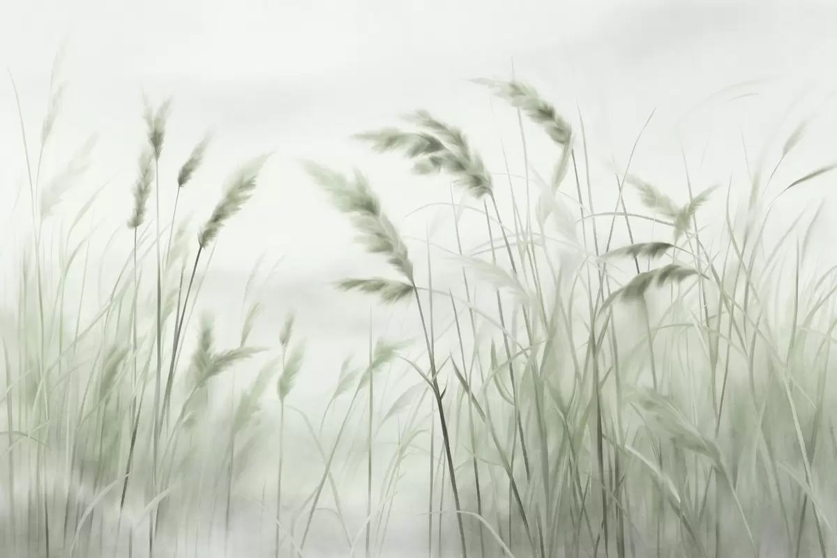 Valokuvatapetti Pitkä, teksturoitu kuiva ruoho ja vehnän tähkät pellolla pehmeää, vaaleaa taustaa vasten Nr w09648v1