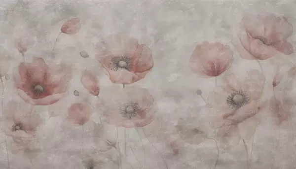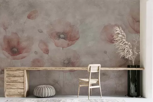 Valokuvatapetti Suuret unikonkukat seinällä, jossa on antiikkinen vaikutelma Nr w09686
