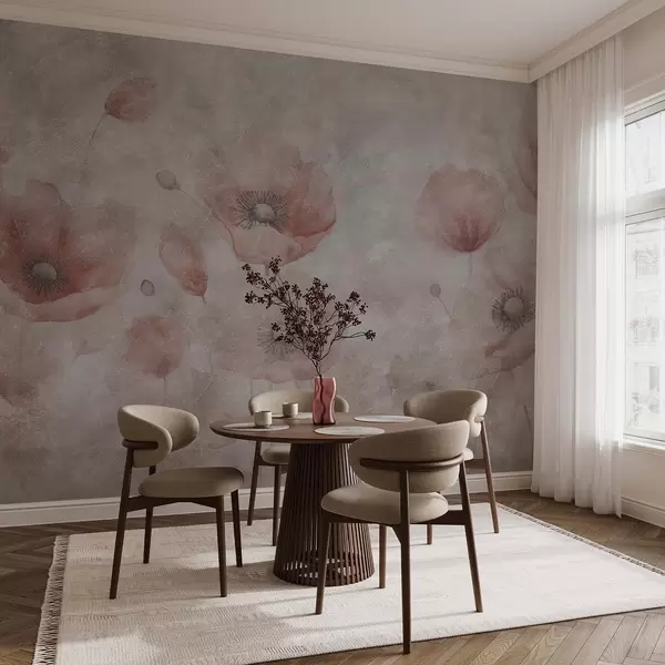 Valokuvatapetti Suuret unikonkukat seinällä, jossa on antiikkinen vaikutelma Nr w09686