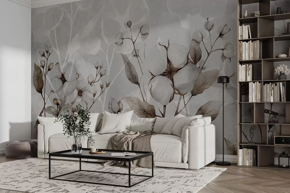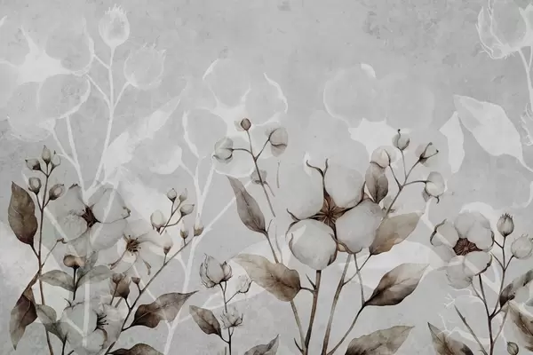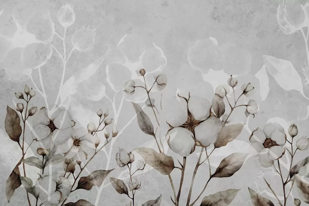 Valokuvatapetti Suuret puuvillakukat vaaleanharmaalla taustalla Nr w09691