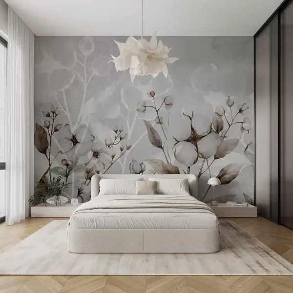 Valokuvatapetti Suuret puuvillakukat vaaleanharmaalla taustalla Nr w09691