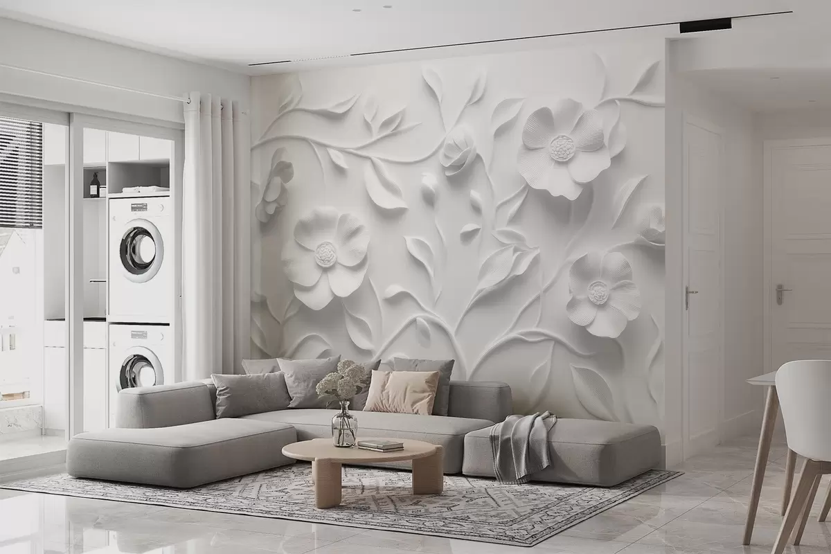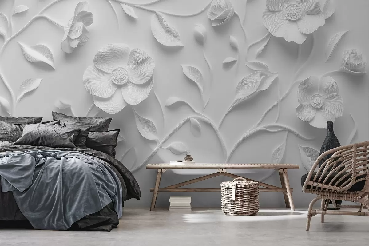 Valokuvatapetti Harmaa kohokuvioitu kukka-koriste Nr w09710