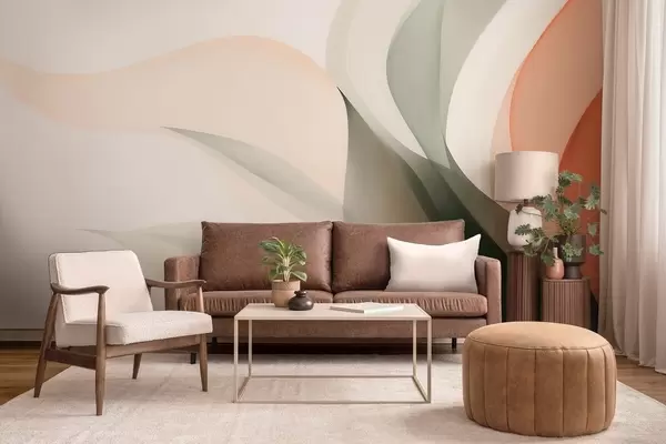 Valokuvatapetti Abstraktit pastellivärit aaltoina oranssin ja vihreän sävyissä Nr w09718