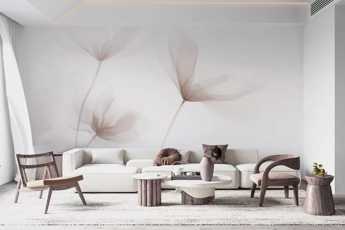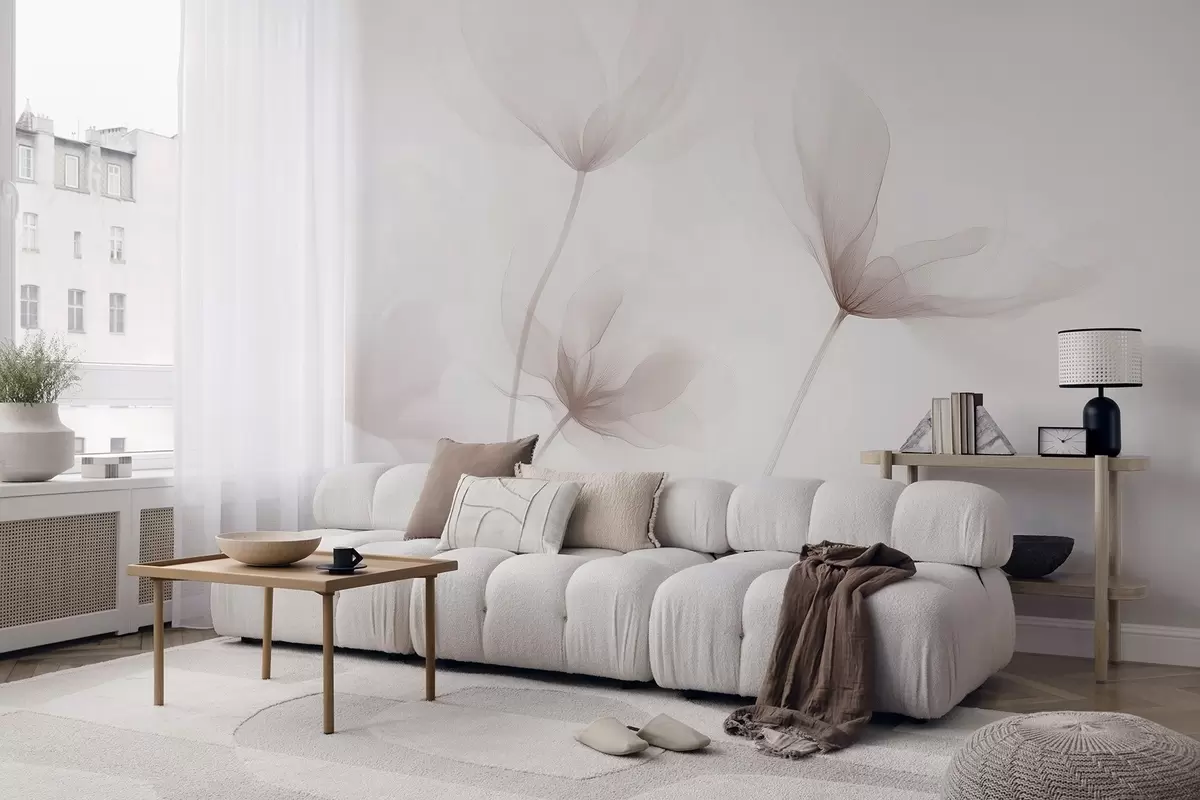 Valokuvatapetti Ilmavat beige kukat minimalistisessa kevyessä tyylissä Nr w09734