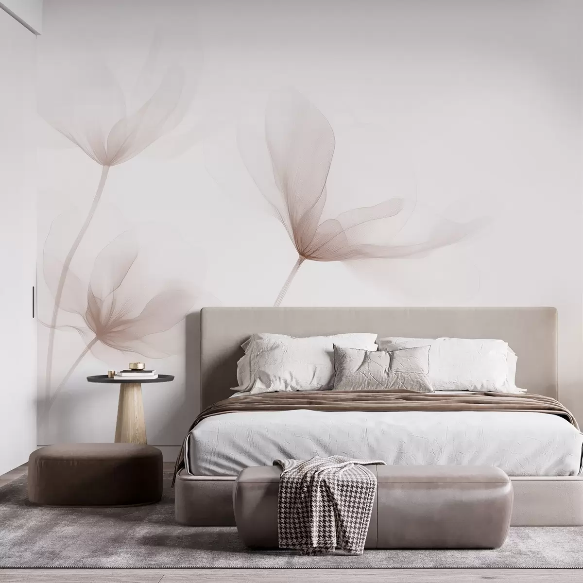 Valokuvatapetti Ilmavat beige kukat minimalistisessa kevyessä tyylissä Nr w09734