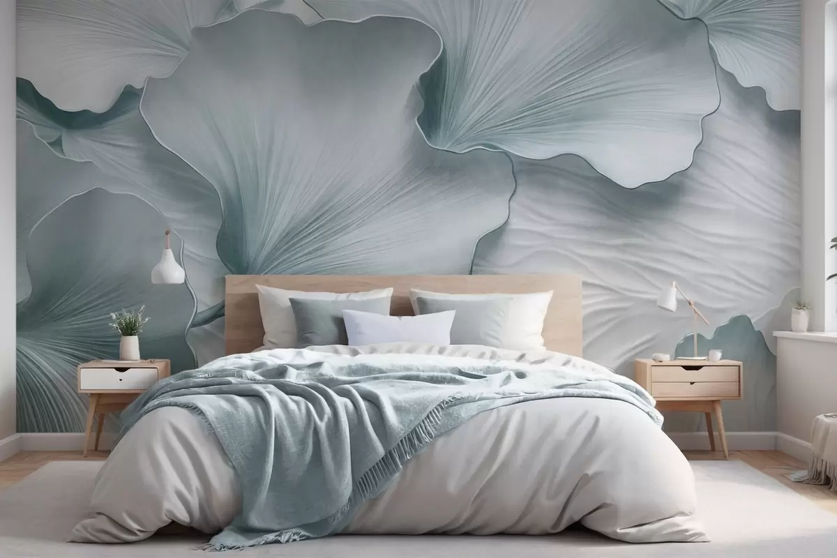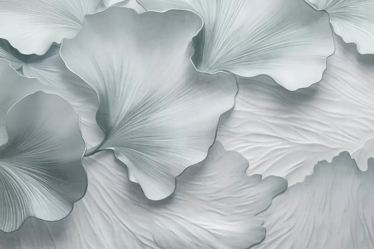 Valokuvatapetti Teksturoidut, sinivalkoiset ginkgo-lehdet, joissa on herkkä orgaaninen painatus Nr w09741v1