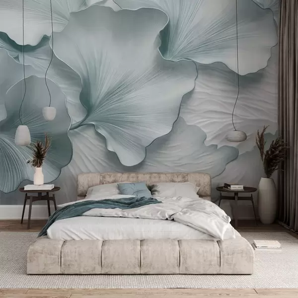 Valokuvatapetti Teksturoidut, sinivalkoiset ginkgo-lehdet, joissa on herkkä orgaaninen painatus Nr w09741v1