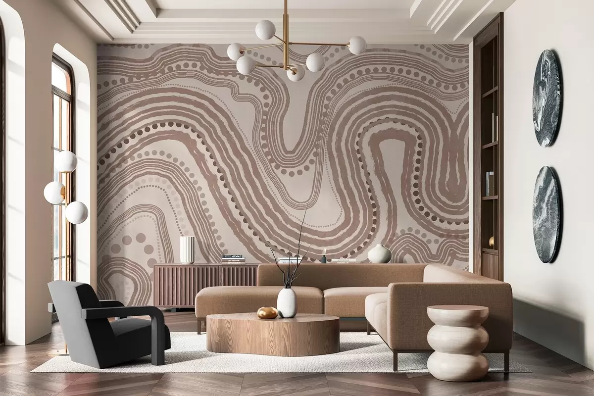 Valokuvatapetti Abstraktit ruskeat ja beigeä aaltoilevat viivat ja pisteet, moderni teksturoitu taide Nr w09747v1
