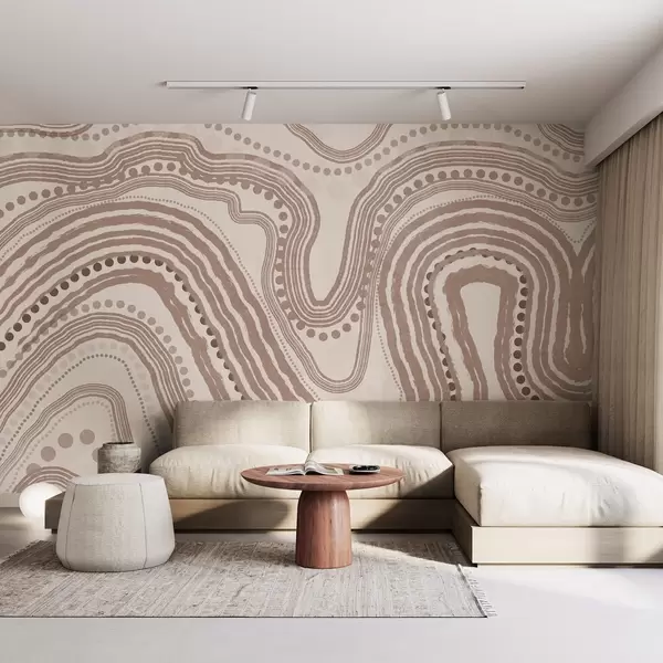Valokuvatapetti Abstraktit ruskeat ja beigeä aaltoilevat viivat ja pisteet, moderni teksturoitu taide Nr w09747v1