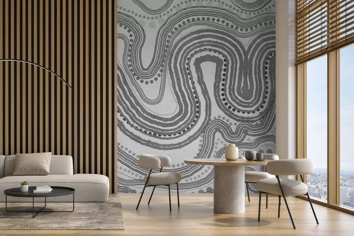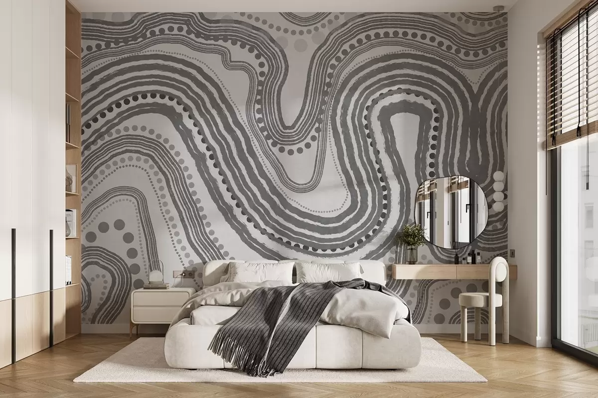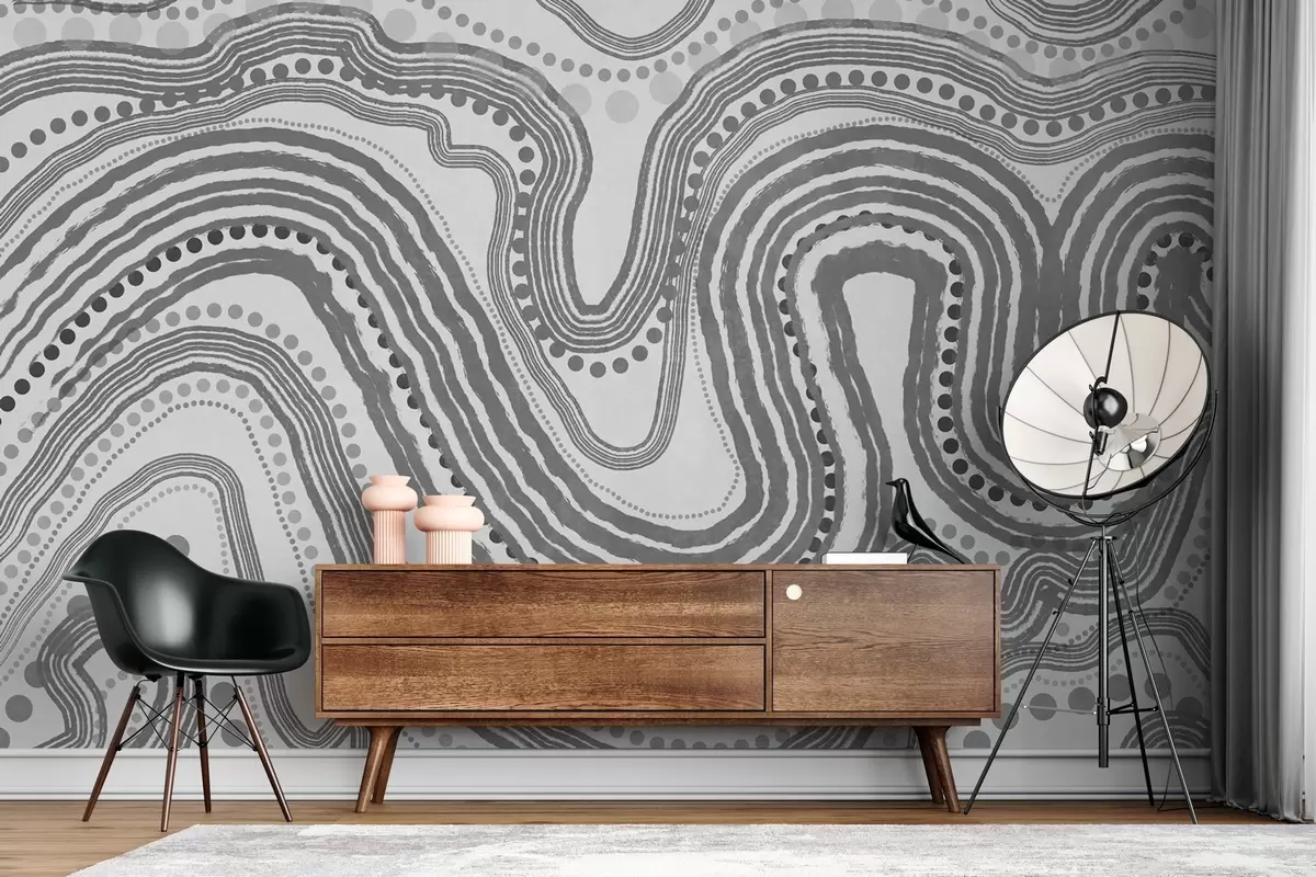 Valokuvatapetti Abstraktit tummanharmaat aaltoilevat viivat ja pisteet, moderni teksturoitu taide Nr w09747v2