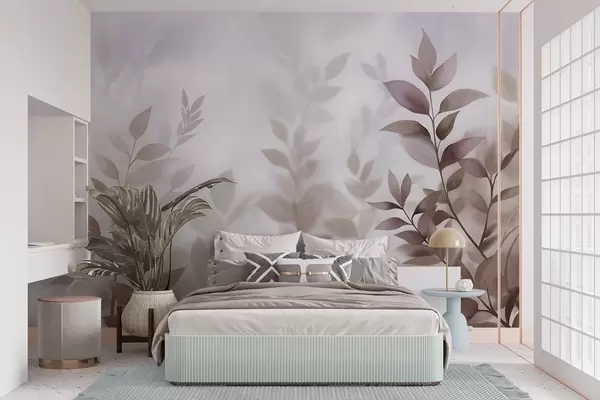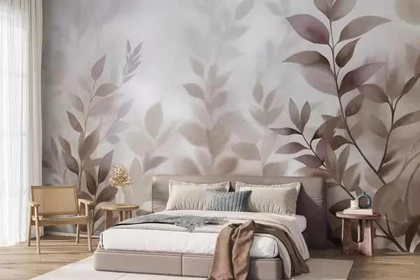Valokuvatapetti Hienostuneet oksat, hillityn ruskeat ja beige lehdet, akvarellimaalaus, teksturoitu taide Nr w09750