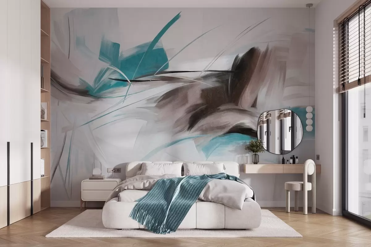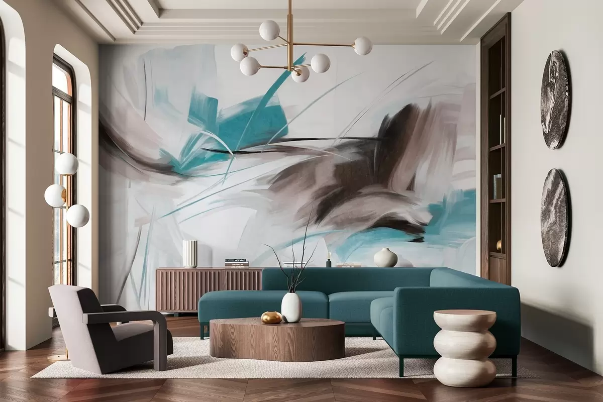 Valokuvatapetti Abstrakti maalaus tyylillä, jossa on ruskeita ja sinisiä teksturoituja siveltimenvetoja Nr w09755v1